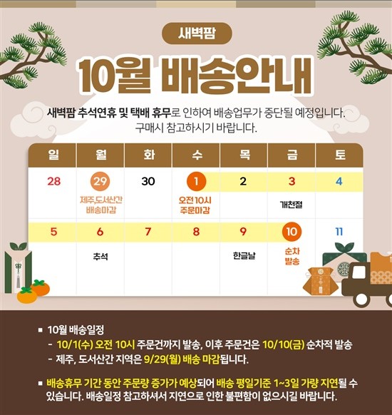 새벽팜 10월 배송휴무안내