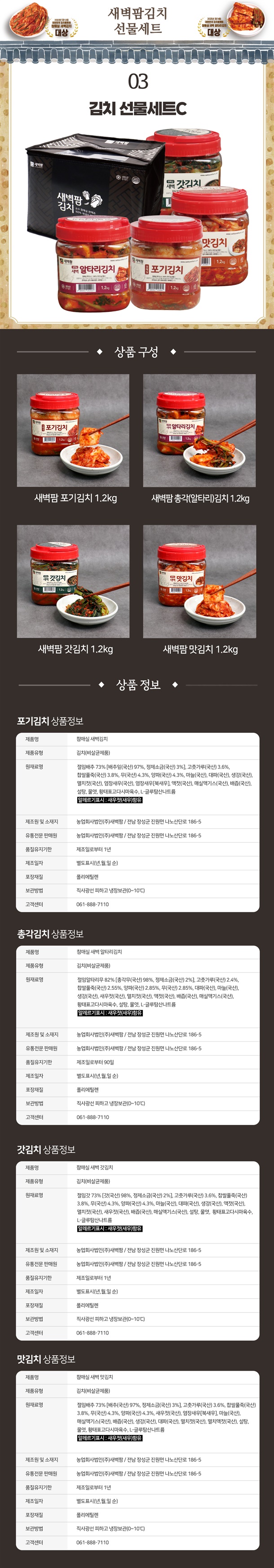 새벽팜 김치 선물세트C 포기 1.2kg + 알타리 1.2kg + 갓김치 1.2kg + 맛김치 1.2kg