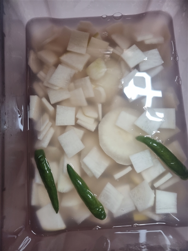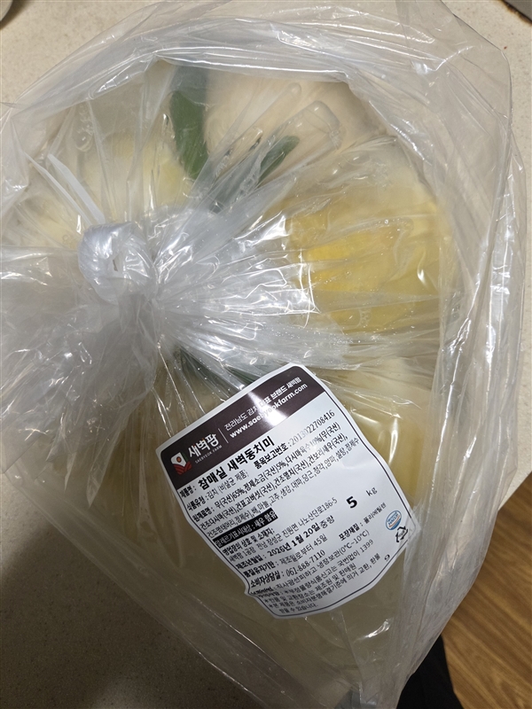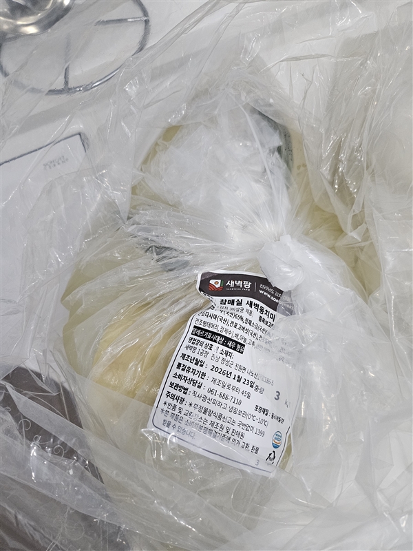 동치미 이번 겨울에 세번째 주문인데 이번 국물은 좀 빨개요. 무슨 당근이나 비트 색인가? 근데 무랑 고추 몇개만 왔구 무청 없이. 올때마다 좀 다른 느낌이예요. 국물에 무슨 찌꺼기 같은게 있었는데 통에 담다가 그냥 들어가버려서 무청 조각이겠지 해요. 9.8키로 통 하나. 아이스박스는 매번 깨져요. 부스러기 엄청 날리고. 청소기로 치우면서 담지않으면 스티로폼 가루 들어갈거같아요. 아이스박스가 안좋은거같아요. ㅠ 새벽팜 김치는 다 맛있어서 골고루 이것저것 시켜먹으면 김치만으로도 반찬이 많아요 ㅋ 아근데 제가 사고 네이버에서 3천원 더 싸게 파네요. 힝 ㅠ