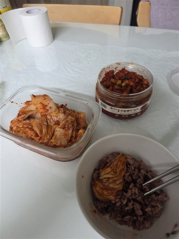 싱겁지 않코 내입에 딱이네 무우말랭디도 반거조로 감칠맛 와 대단하네요 이런거 별 감심없는데 김치는 구구절절 말할것도 없내요 맛있어요