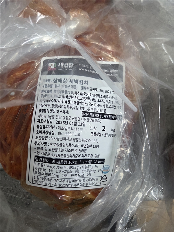 오랜동안 ㅁㅊ김치를 애용했는데 점점 맛이 변해서 다른 브랜드를 찾던 중 25년 김치품평회 대상을 차지한 새벽팜 김치를 발견해서 처음으로 주문하게 되었답니다. 배송도 빨랐고 포장도 꼼꼼했고 사은품으로 1.5kg 신안 천일염도 보내주셨네요 ^^ 감사요. 김치를 용기에 담으며 한 쪽 맛보니 매콤함과 신선함 그리고 적당한 간과 땟깔이 눈코입을 바로 사로 잡았어요. 사진처럼 반은 그대로 담고 반은 쭈욱 찢어 담으니 마치 방금 담은 겉절이 같다는 ^^* 첫인상이 너무 좋아서 일단 장기 주문 각 이네요. 변치않는 맛 늘 선사해 주시길요. 수고하세요 ^^