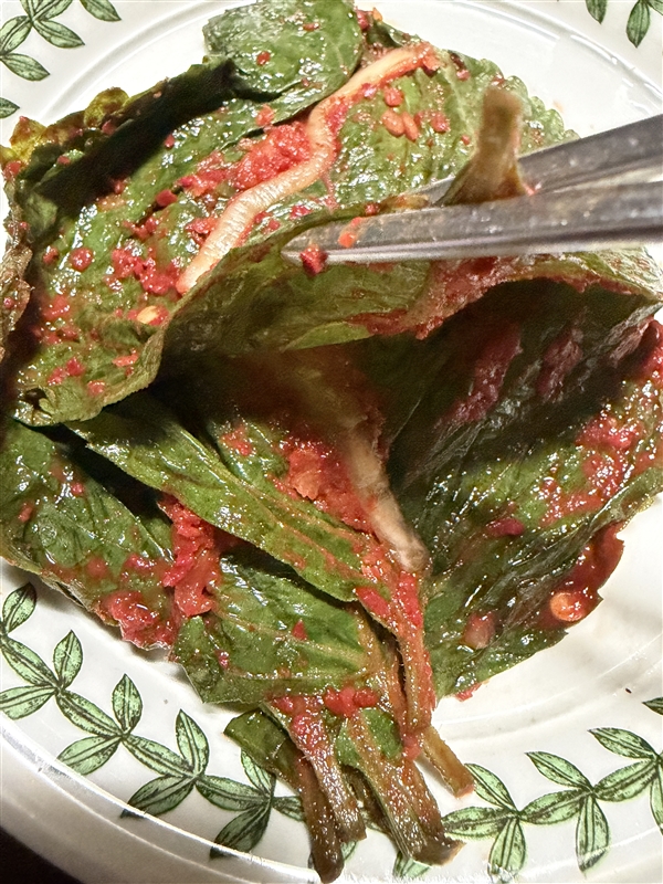 깻잎으로 담은 김치가 이렇게 맛있을거라고는 생각못했네요. 약간 젓갈 냄새가 강하긴 하지만 갓지은 밥에 얹어먹으니 꿀맛이네요