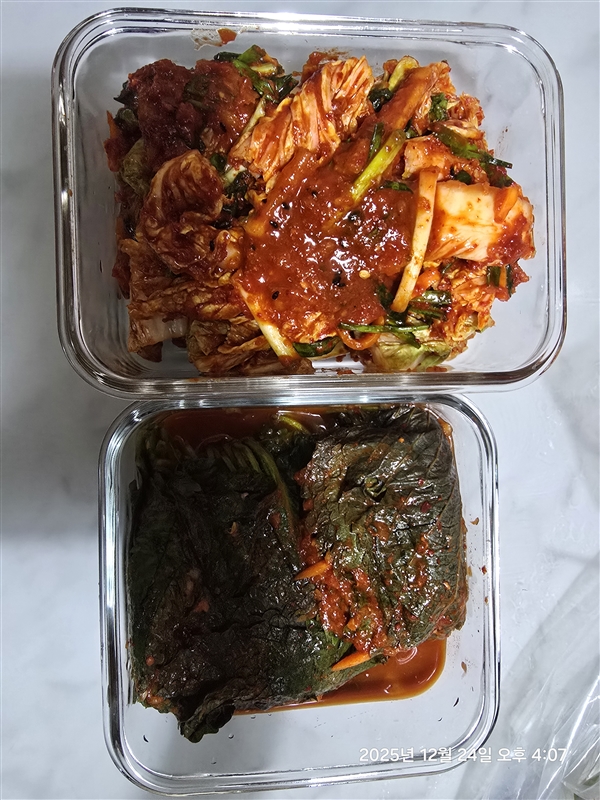 생 깻잎 김치가 너무 신선하고 맛있어요. 깻잎 김치 파김치는 너무 비싸다 생각 되는데, 직접 담는다 생각하면 일 일이 정말 손이 많이 가서 비싸다고 말할 수가 없어요ㅋ 깻잎 김치는 집에서 담아도 선호 장의 한 번씩 양념을 넣었는데 이건 한장씩 일 일이 양념을 다 얹었어요. 신랑이 너무 좋아해서 자기 먼저 밥 다 먹으면 저 많이 못 먹게 장난으로 뚜껑을 막 닫아버려서 티격태격 해요. ㅋㅋ 새벽 김치 밥도둑 이라고 다이어트 실패라고 원망 아닌 원망을 합니다. 항상 잘 먹고 있어요. 감사합니다.