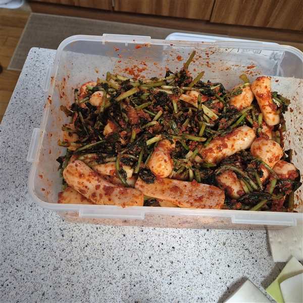 택배받자마자 바로 김장시작했어요. 양념도같이구매해서 파랑 무채만 더넣어서 담갔는데 양념이 맛있어서 이번김장도 성공인것같네요~