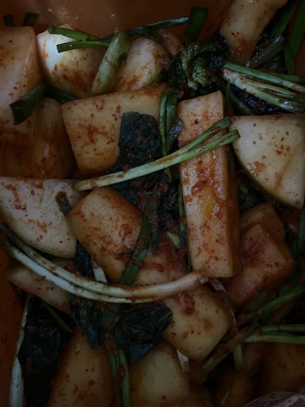 작년에 맛있게 먹어서 올햐도 주문했어요 우리집엔 양념이 좀 많아 쪽파,갓,석박지 무 같이 버무렸어요 맛있길 바라며~~