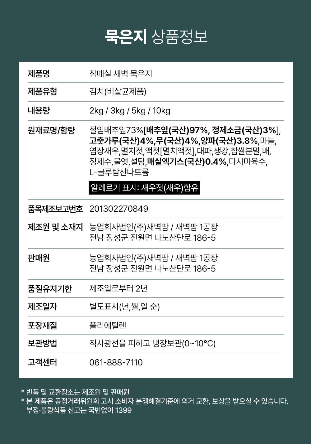 [농식품부 김치품평회 대상] 우리 농산물로 담근 전라도식 참매실 포기김치 2kg~10kg