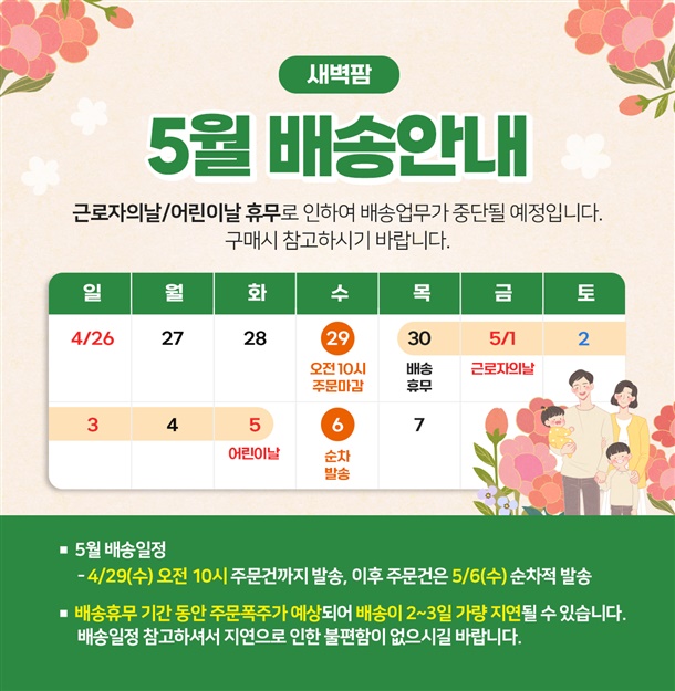 · 오늘출발 : 평일 10시00분까지 결제완료된 주문