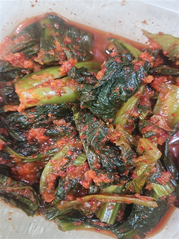 톡쏘는 갓김치 맛이 제입에는 딱이네요. 익기전에 다 먹을것 같아요. 양도 넉넉하고 양념국물도 적거나 과하지 않고 알맞네요.